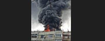 Incendiu violent pe terasa unui bloc cu 10 etaje aflat în reabilitare