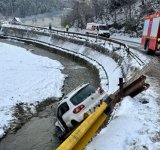 O mașină cu doi adulți și doi copii a căzut în albia unui pârâu