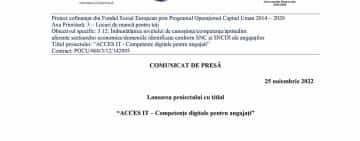 COMUNICAT DE PRESĂ | Lansarea proiectului cu titlul “ACCES IT – Competențe digitale pentru angajați”