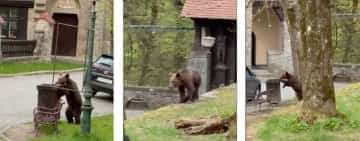 Urs filmat în timp ce își căuta hrană în tomberoanele din Sinaia