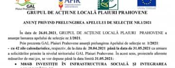 GAL Plaiuri Prahovene: ANUNŢ PRIVIND PRELUNGIREA APELULUI DE SELECŢIE NR.1/2021