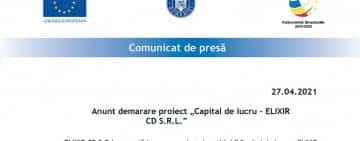 COMUNICAT DE PRESĂ: Anunț demarare proiect „Capital de lucru – ELIXIR CD S.R.L.”