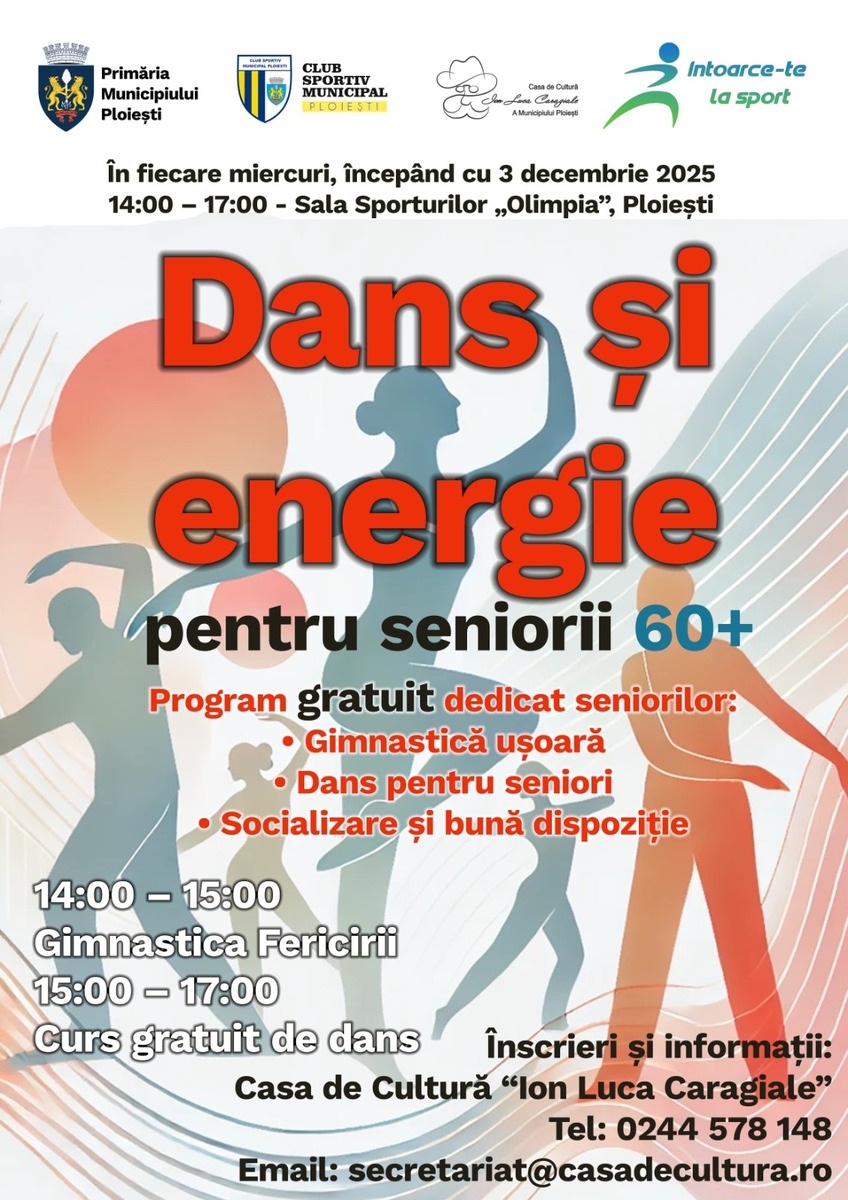 Primăria Municipiului Ploiești, în parteneriat cu Casa de Cultură “Ion Luca Caragiale”, Clubul Sportiv Municipal Ploiești și Asociația “Întoarce-te la Sport”, lansează, pentru prima dată, un program permanent și gratuit dedicat persoanelor cu vârsta de 60+, menit să aducă mișcare, bucurie și socializare în viața seniorilor ploieșteni.