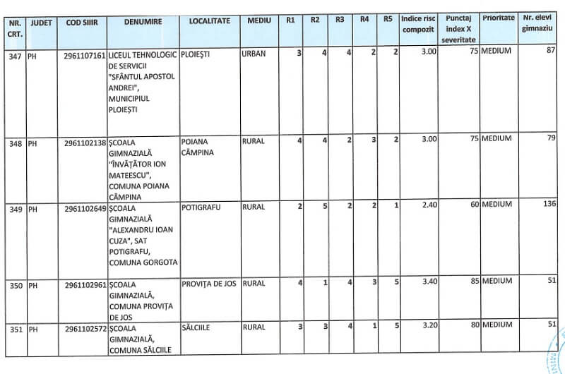 Lista școlilor eligibile din Prahova, în a doua serie din runda a II-a PNRAS