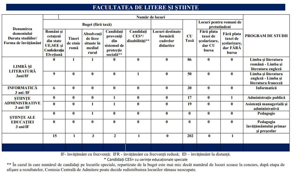 Oferta de școlarizare - studii de licență Facultatea de Litere și Științe (sesiunea septembrie 2024)