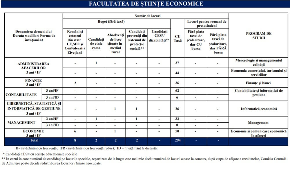 Oferta de școlarizare - studii de licență Facultatea de Științe Economice (sesiunea septembrie 2024)