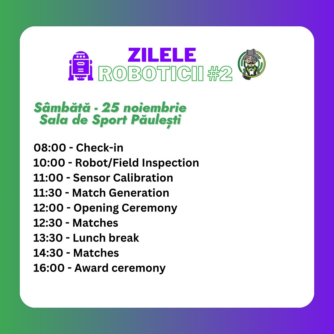 Sâmbătă, în prima zi a evenimentului Zilele Roboticii#2, începând cu ora 11.30, la Sala de Sport din Paulești, elevii și tinerii au ocazia să experimenteze atmosfera competitivă din cadrul FIRST Tech Challenge și să exploreze lumea fascinantă a roboților. Organizatorii au pregătit meciuri robotică, ateliere inedite de Arduino și origami.