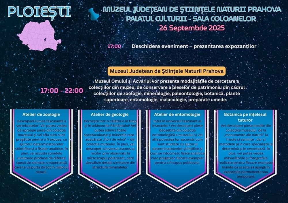 NOAPTEA CERCETĂTORILOR EUROPENI. Muzeul de Științe ale Naturii va fi gazda evenimentelor derulate în Ploiești, la ediția din acest an
