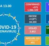 #coronavirus | Bilanţ în creştere: 371 de infectări şi 3 decese raportate în ultimele 24 de ore în România