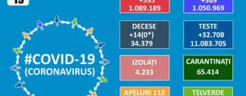 #coronavirus | 14 decese şi 849 de infectări în ultimele 24 de ore, iar numărul pacienţilor aflaţi în stare gravă a ajuns la 212