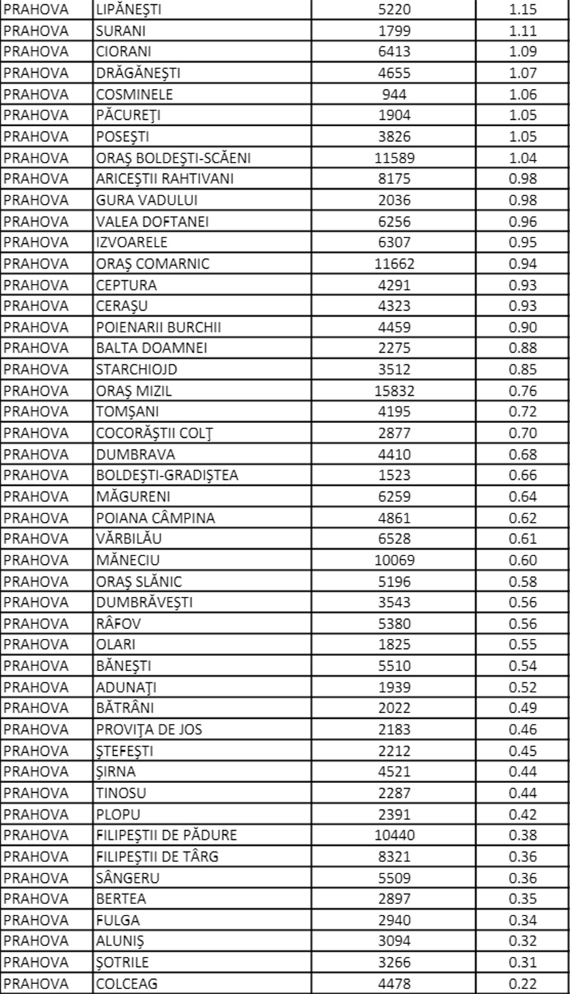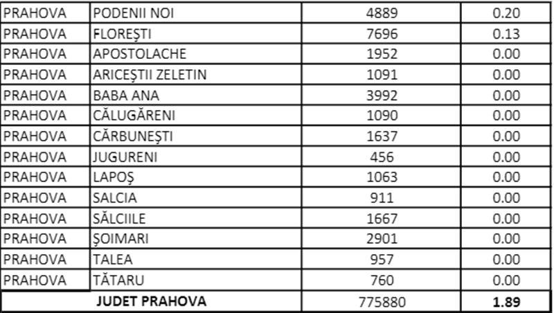 Datele publicate de DSP Prahova pentru ziua de marți, 19 iulie, arată că în județ se ajunsese la o incidență de 1,89 la mie, cu numai 12 localități fără niciun caz activ. Rata de infectare a ajuns peste 3 la mie, ieri, la Ploiești. Peste acest prag se află incidența și în comunele Păulești, Secăria, Gherghița, Cornu, dar și în Sinaia.