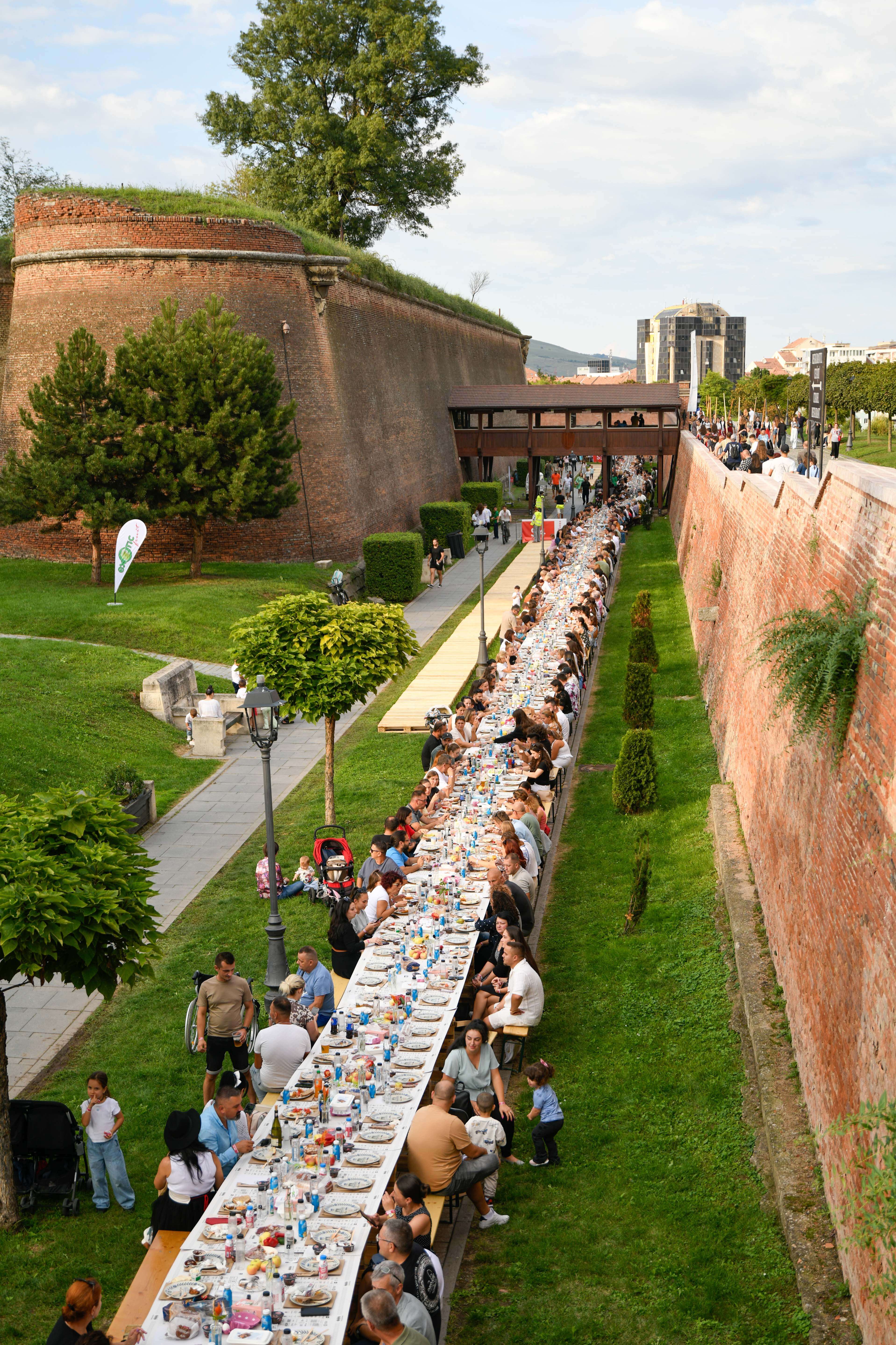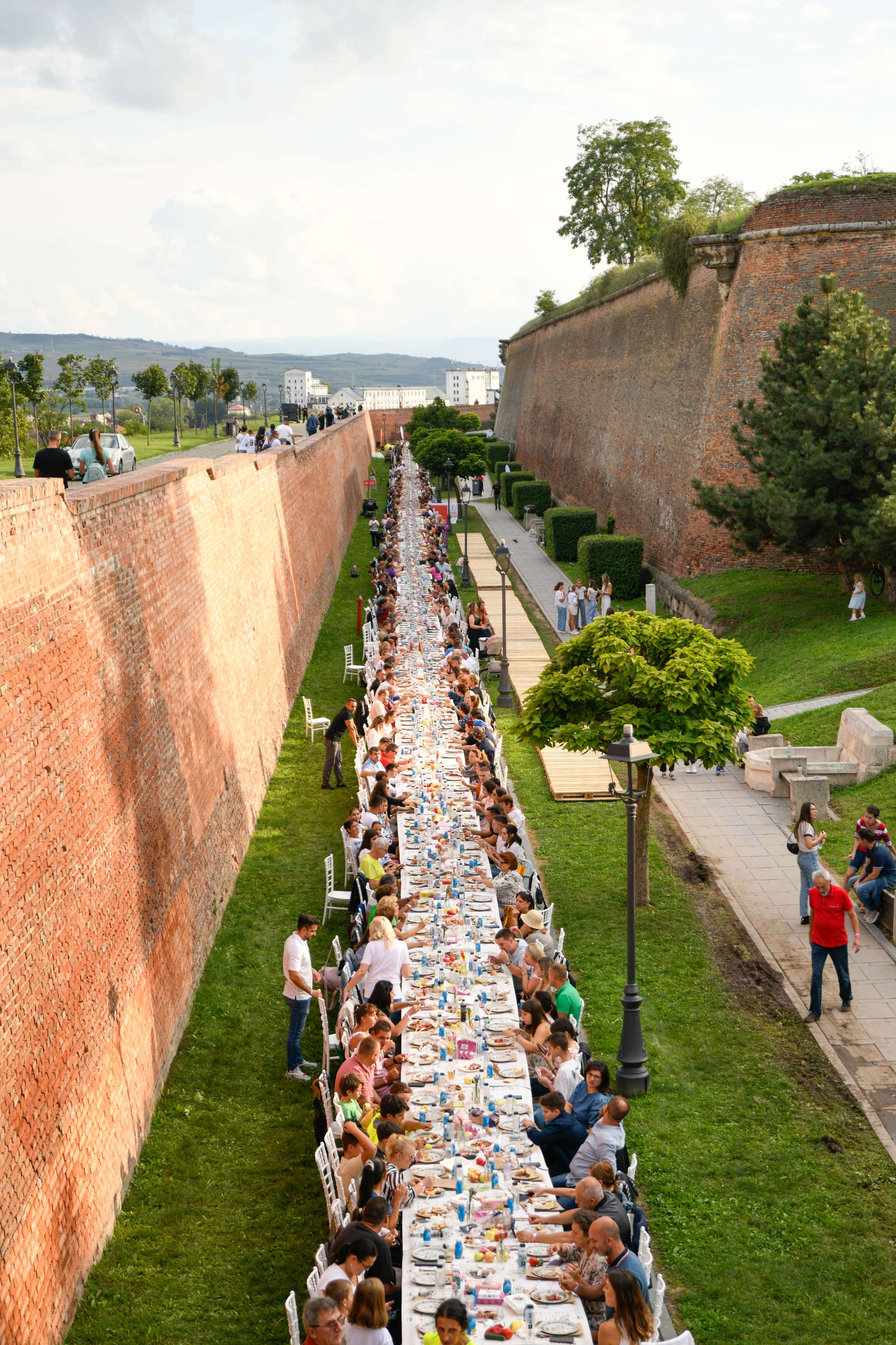 Organizatorii și partenerii au construit masa de peste 2,7 kilometri, la care s-au așezat peste 10.000 de invitați din țară și din străinătate. S-a scris istorie la Alba Iulia. Orașul a intrat din nou în Guinness World Records pentru cea mai lungă masă realizată din materiale reciclabile. Inițiativa aparține Bloom The World și partenerilor strategici care au organizat, pe 13 septembrie, evenimentul „Masa Care Unește”. Peste 10.000 de invitați, din Transilvania, dar și din țări precum Statele Unite, Olanda, Germania sau Nepal s-au așezat la masa comunitară lungă de peste 2.7 kilometri construită în jurul Cetății Alba Carolina. Este a treia atestare obținută de Alba Iulia în Guinness World Records, după cea din 2009 (Marea Îmbrățișare a Cetății Alba Carolina) și cea din 2018 (Cea mai mare hartă a unei țări formată din oameni).