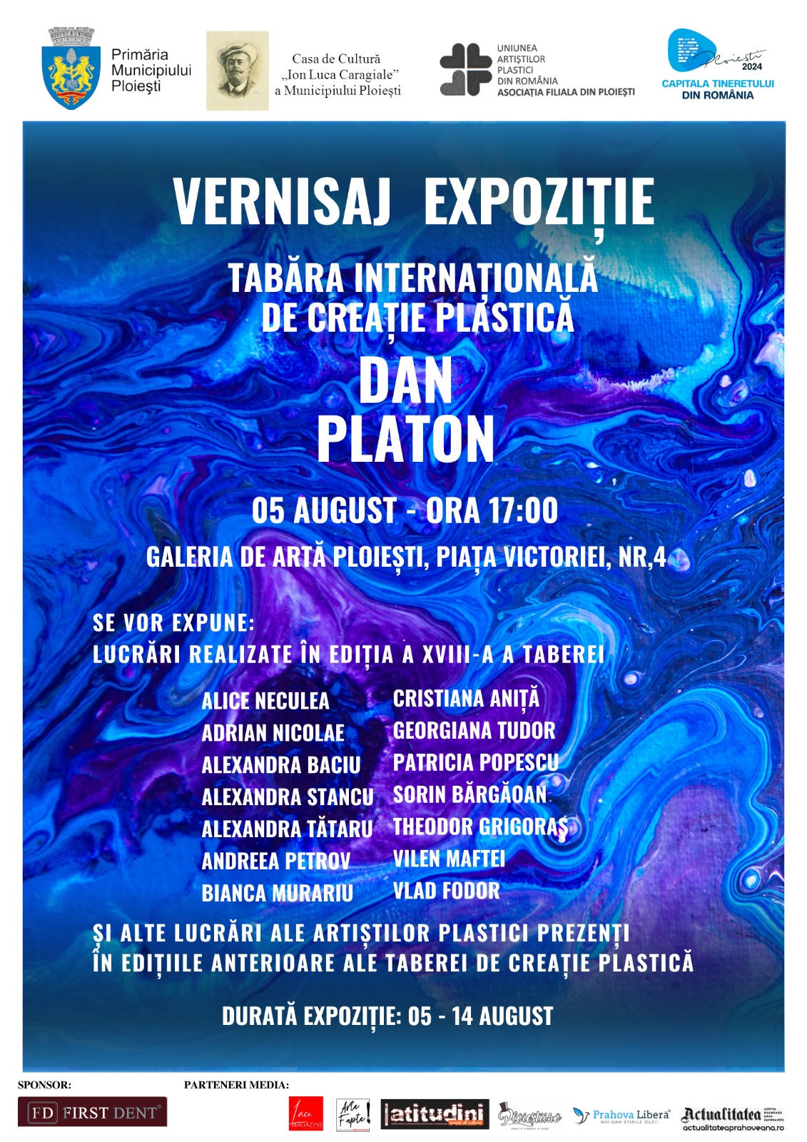 Casa de Cultură „Ion Luca Caragiale” a Municipiului Ploiești anunță organizarea expoziției Taberei de Creație Plastică „Dan Platon”, care va avea loc în perioada 5-14 august 2024, la Galeria de Artă Ploiești.
