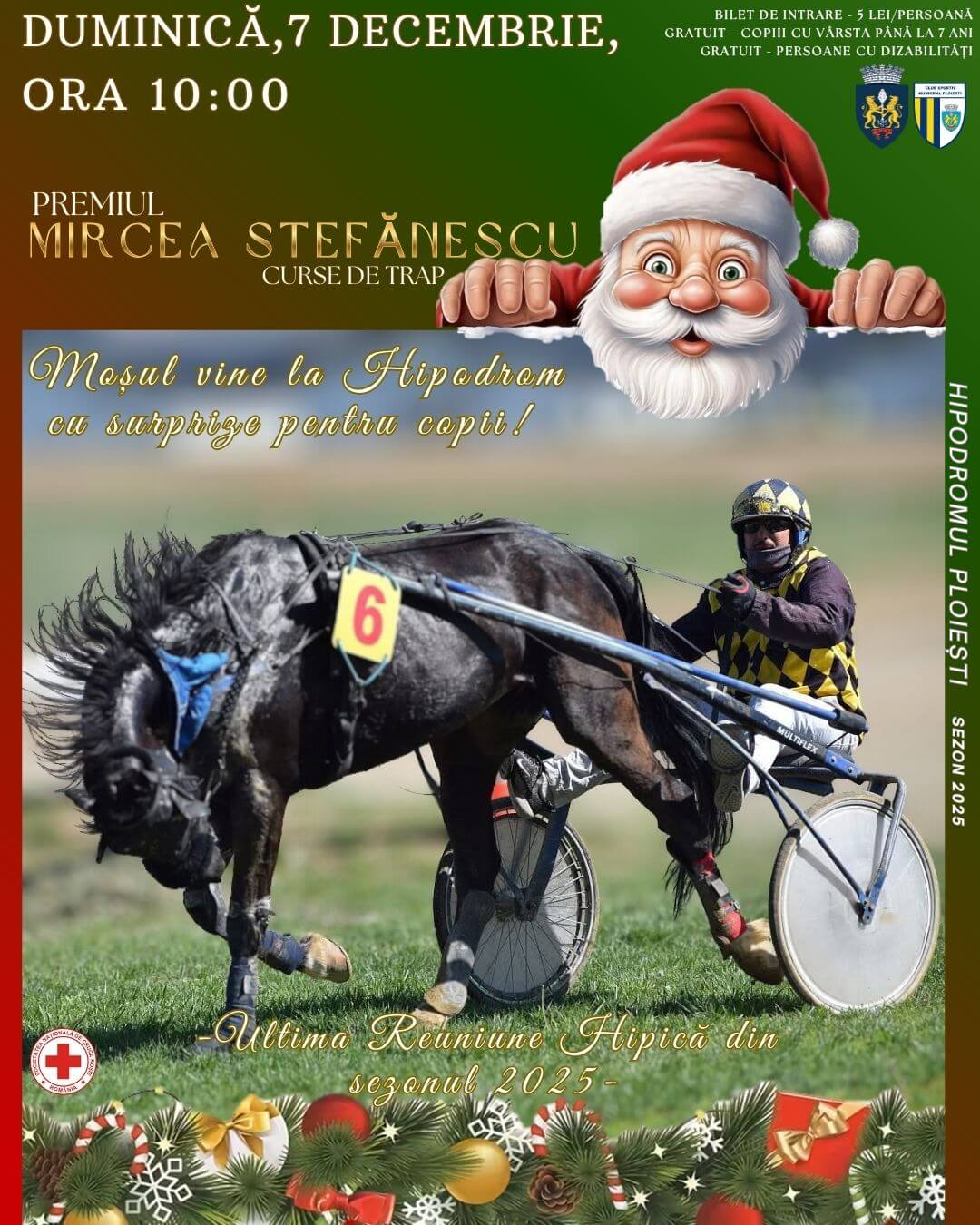 La ultima reuniune a acestui an, pentru cei mai mici, MOȘU ROȘU CRĂCIUN, în săniuța sa cea vestită plină cu daruri trasă de Rudolf, va poposi și la Hipodrom, într-o întâlnire devenită de-acum tradițională, atât pentru picimea ploieșteană cât și pentru mămici, tătici și bunici.