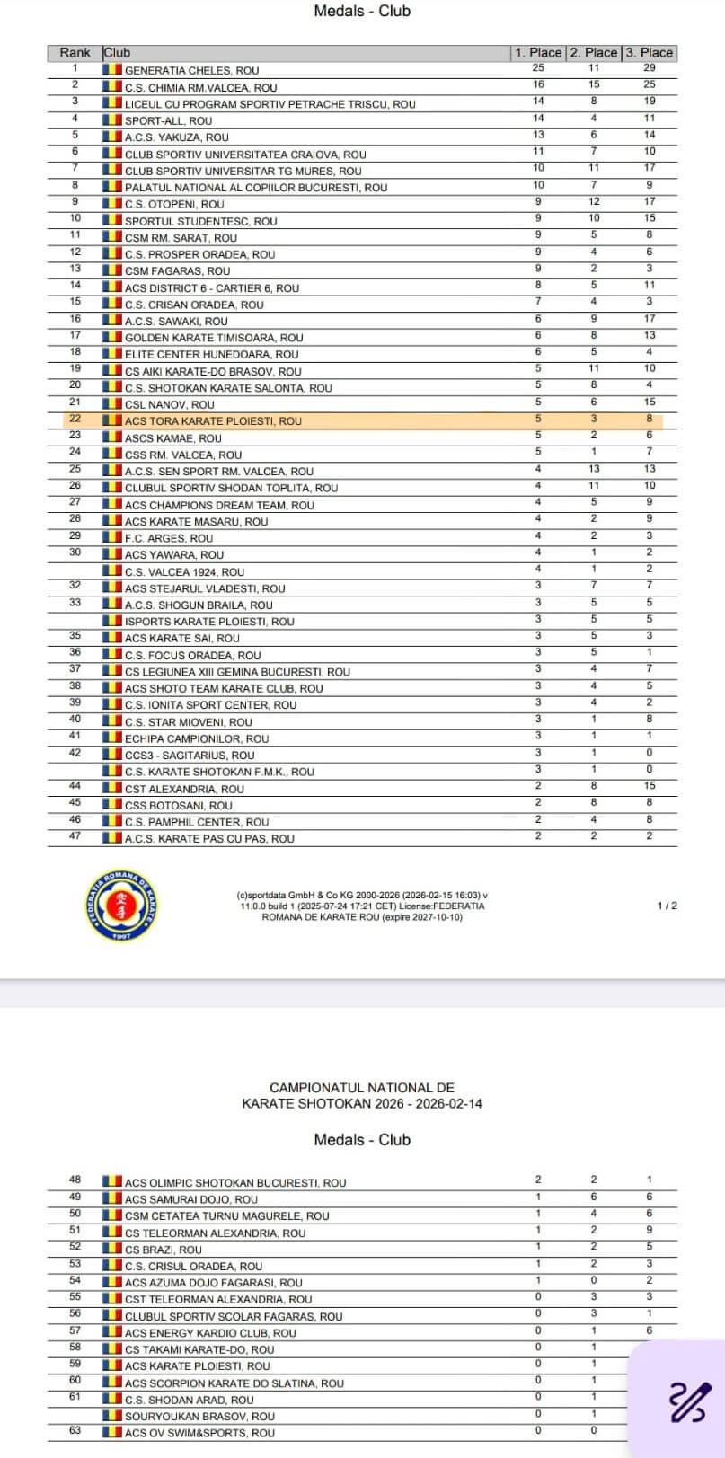 - Avram Vladimir locul 1 kumite shobu nihon masculin Cadeți +70kg, locul 3 kumite wkf masculin Cadeți +70kg, locul 3 kumite echipe Cadeți.