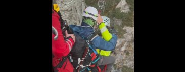 VIDEO🎦Un bărbat blocat pe un traseu de alpinism a fost recuperat de salvamontiști cu ajutorul elicopterului