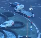 VIDEO 🎦 Un curier de la Sameday a ajuns cu mașina în rondul din centrul Ploieștiului