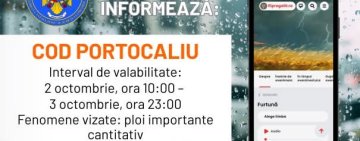 PRAHOVA. COD PORTOCALIU de ploi valabil în intervalul 02.10, ora 10:00 - 03.10, ora 23:00