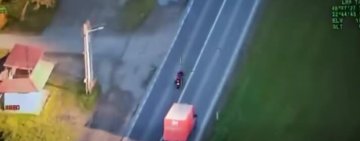 VIDEO 🎦 13 amenzi și permisul suspendat pentru aproape 800 de zile în cazul unui motociclist grăbit surprins în trafic, din elicopter