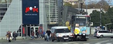 Ploiești. Accident rutier în intersecția de la Nord. Primul vagon al unui tramvai a deraiat