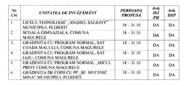 Trecerea la Scenariul 2 pentru alte noi unități de învățământ a fost aprobată la cererea Consiliilor de Administrație, de CJSU, după ce aceeași măsură a fost luată, în ultima săptămână, pentru alte 58 de unități de învățământ din județ.