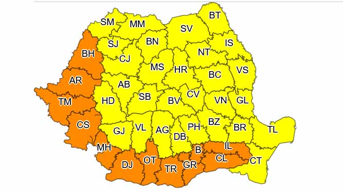 Codul galben de căldură va fi valabil în toate zonele de câmpie şi de podiş. Disconfortul termic va fi ridicat, ITU va depăşi pragul critic de 80 de unităţi, temperaturile maxime se vor situa în general între 33 şi 37 de grade, iar cele minime se vor încadra între 17 şi 20 de grade.