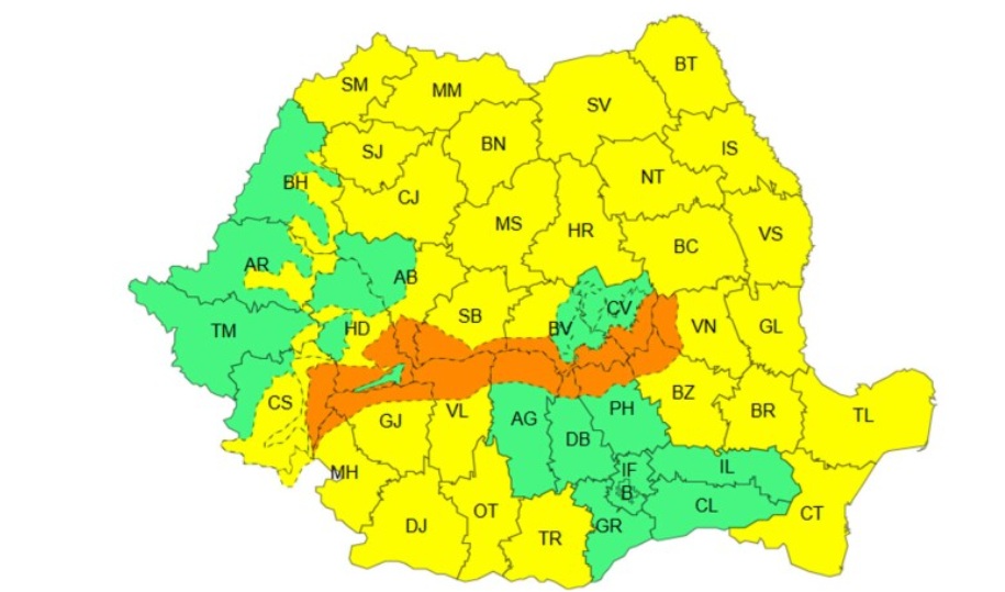 Administrația Națională de Meteorologie a emis o informare meteorologică și mai multe atenționări și avertizări Cod Galben și Cod Portocaliu, ce vizează intensificări ale vântului, ninsori, polei și viscol, în mare parte din țară.