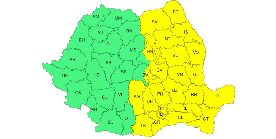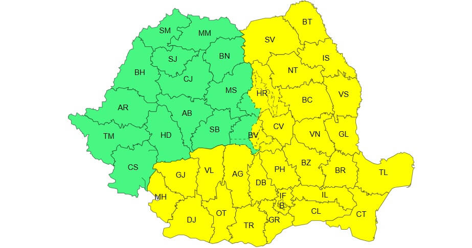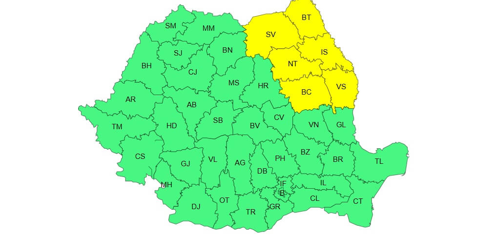 ANM menţine atenţionarea cod galben pentru 01 februarie, ora 20:00 – 02 februarie, ora 10:00, vizând vreme geroasă în Moldova, Dobrogea, Muntenia, estul şi sud-estul Transilvaniei, unde tmperaturile minime se vor situa între -16 şi -9 grade, mai coborâte în nordul Moldovei până în jurul a -20 de grade.