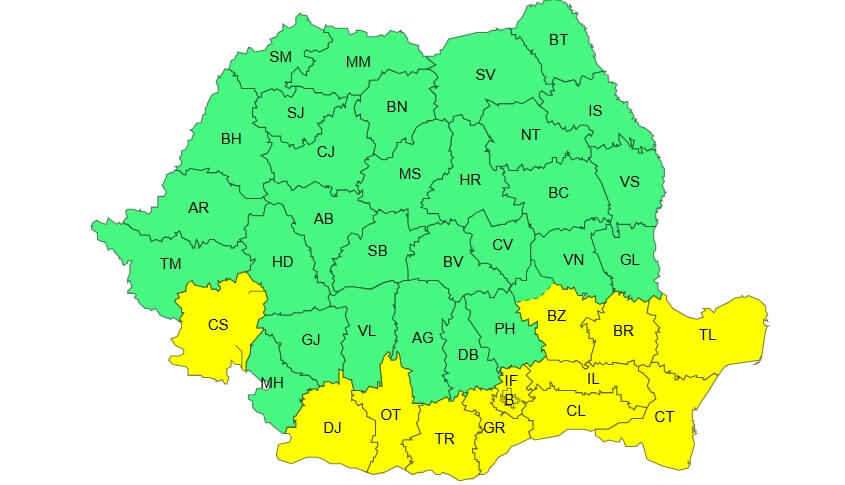O nouă atenţionare cod galben vizează intervalul 02 februarie, ora 10:00 – 03 februarie, ora 10:00.