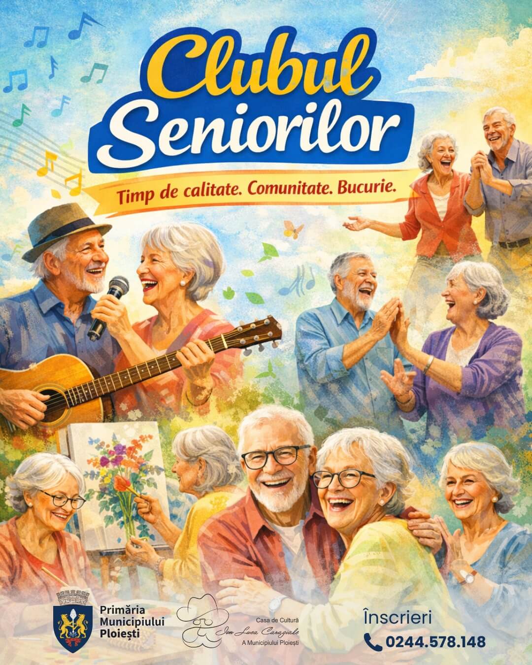 Casa de Cultură „Ion Luca Caragiale" a Municipiului Ploiești, cu sprijinul Primăriei Ploiești, lansează Clubul Seniorilor, un program cultural-educativ pentru persoanele 60+, care își doresc să rămână active, să socializeze și să se bucure de timp de calitate într-o comunitate prietenoasă.