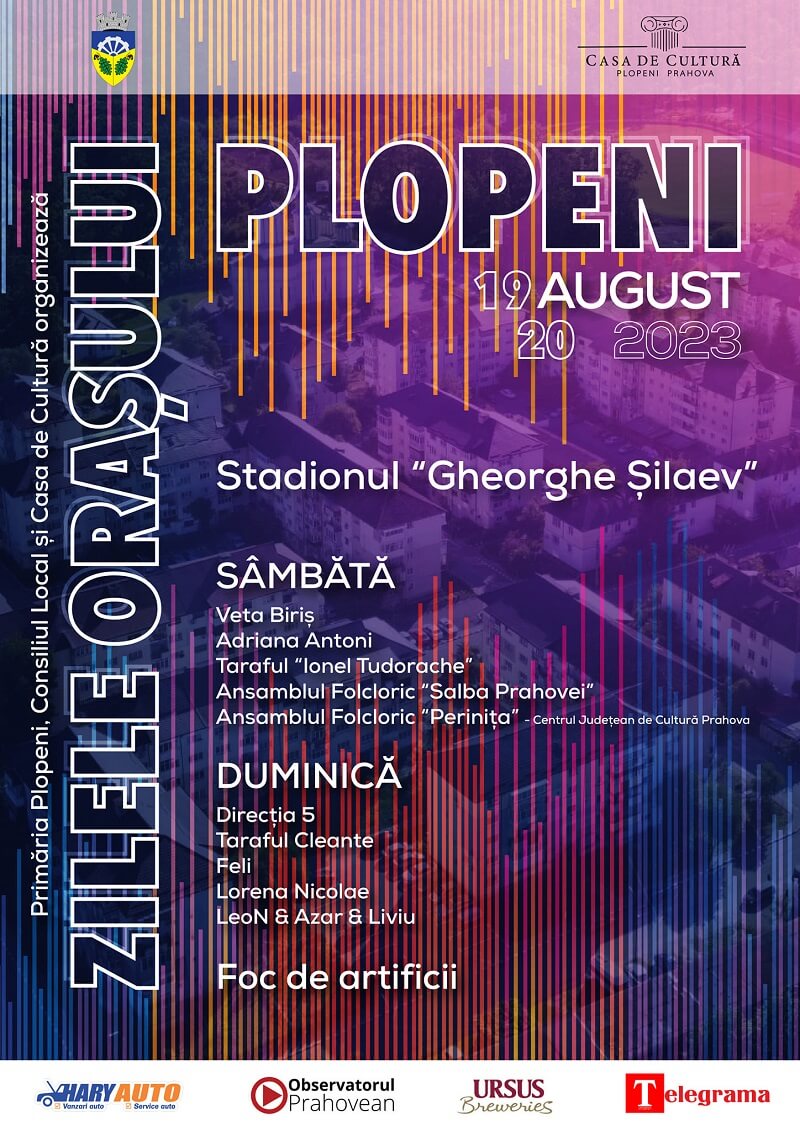 Zilele Orașului vor avea loc pe 19-20 august, manifestarea urmând să fie organizată pe Stadionul "Gheorghe Șilaev". Anul acesta, vor sărbători zilele Plopeniului Veta Biriș, Adriana Antoni, Direcția 5, Taraful Clenate, Feli, Taraful "Ionel Tudorache", Lorena Nicolae, LeoN&Azar&Liviu, alături de ansamblurile folclorice "Salba Prahovei" și "Perinița".