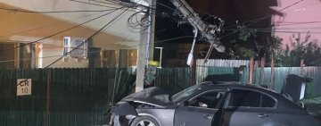 Accident lângă secția de Poliție. Șoferul unui BMW a rupt un stâlp, un gard și o țeavă de gaze