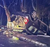 UPDATE. FOTO 📸 O mașină s-a răsturnat, azi-noapte, în sensul giratoriu de la Tătărani