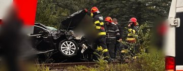 UPDATE. FOTO 📸 Accident pe calea ferată, lângă Slănic. O mașină în care erau 5 persoane a fost lovită de tren