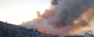 VIDEO 🎦 Munții de deșeuri de la Ariceștii Rahtivani ard în continuare. Pompierii se luptă cu focul de mai bine de 15 ore