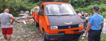 Munte de gunoaie, lângă DN1. Bărbatul prins în fapt a rămas fără 30.000 de lei și mașina cu care transporta deșeurile