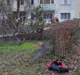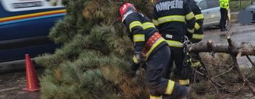 FOTO 📸 Ploiești. Pompierii au intervenit pentru îndepărtarea unui copac care s-a rupt de la rădăcină
