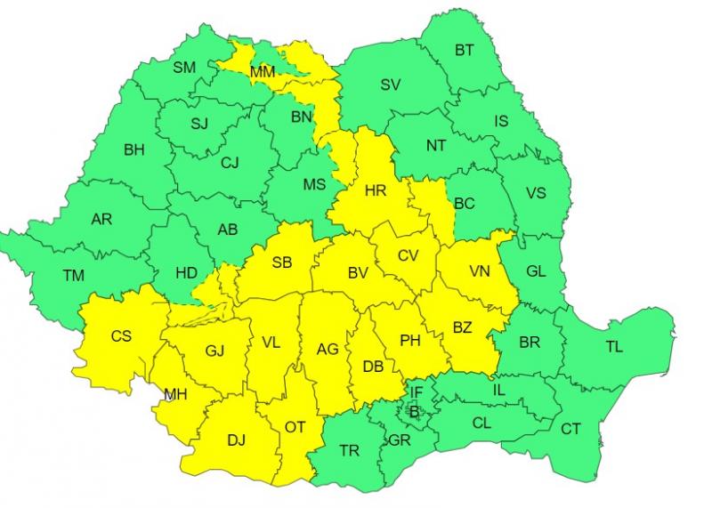 Alerta meteo este valabilă și pentru alte județe și este în vigoare până joi la ora 06:00 în Oltenia, sudul și estul Transilvaniei, sudul Banatului, jumătatea de nord a Munteniei, sud-vestul Moldovei și local în Maramureș. În aceste zone vor fi perioada cu instabilitate atmosferică.