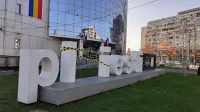 Un grup de tineri a vandalizat logo-ul cu litere din plastic din fața Primăriei Ploiești