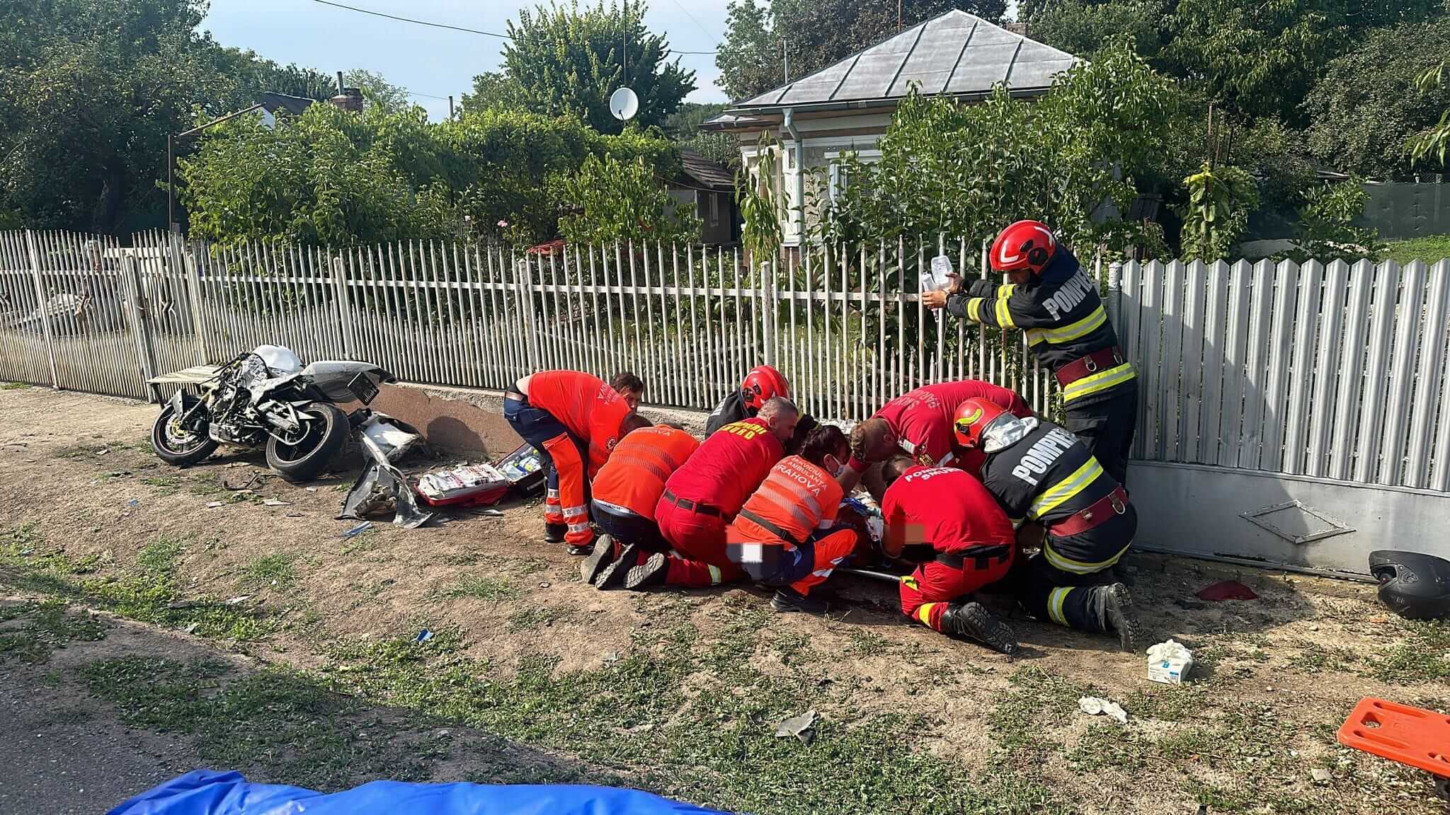 La locul intervenției a ajuns și ambulanța TIM (terapie intensivă mobilă), cu medic. Motociclistul a fost transportat la spital de ambulanța SMURD.
