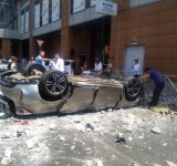 Accident șocant. O mașină în care se aflau doi soți și copilul lor a căzut de la etajul al treilea al unei parcări