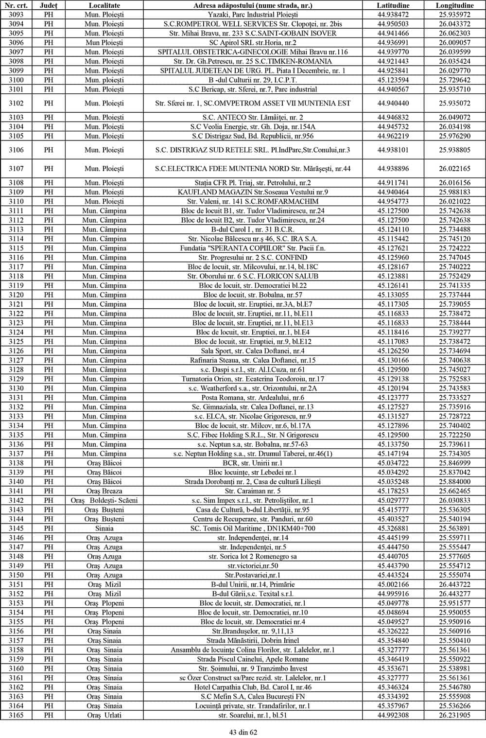 Potrivit unei liste publicate de Inspectoratul General pentru Situații de Urgență, 97 dintre adăposturile din Prahova se află în Ploiești, iar 27 la Câmpina. În orașele din județ mai sunt astfel de buncăre la Băicoi (3), Breaza (1), Boldești-Scăeni (1), Bușteni (2), Sinaia (10), Azuga (5), Mizil (2), Plopeni (3), Urlați (22), Vălenii de Munte (3). Pe lista IGSU nu figurează orașele Comarnic și Slănic.
