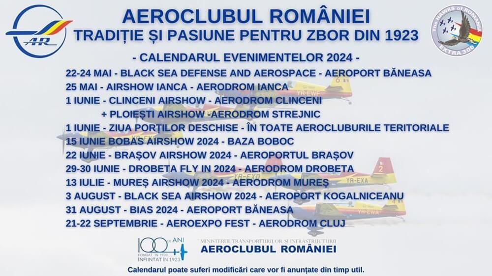 Calendarul evenimentelor organizate de Aeroclubul României, în acest an: