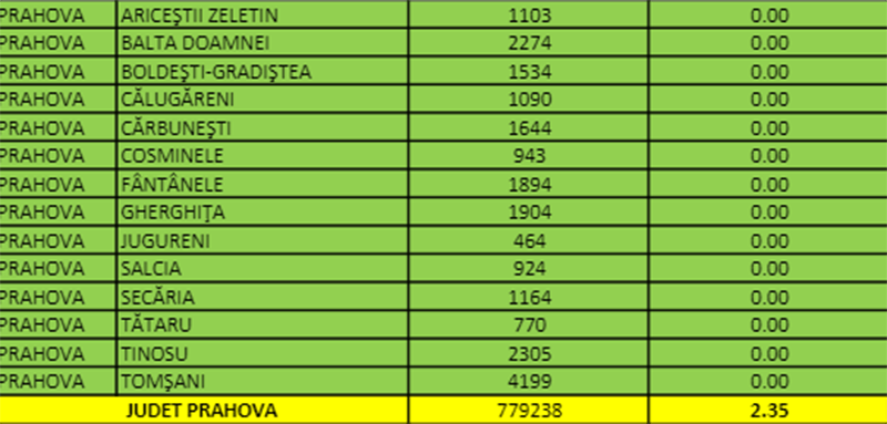 Rata infectărilor în județul Prahova, anunțată marți de Direcția de Sănătate Publică, este de 2,35 cazuri active la 1.000 de locuitori.
