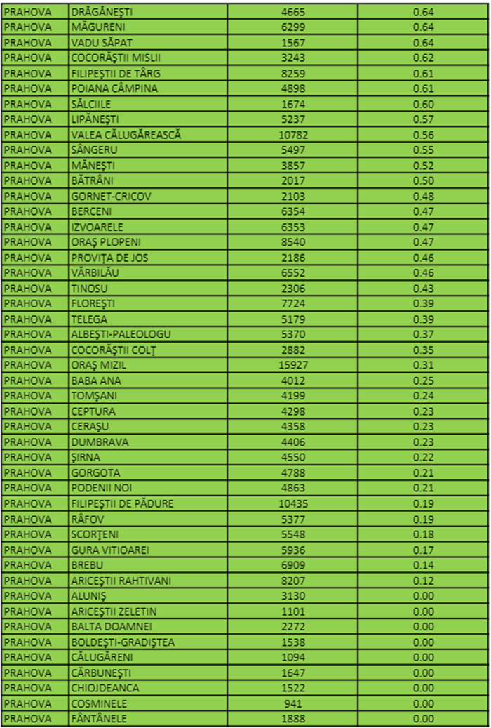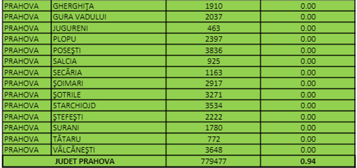 La Câmpina, incidența a ajuns la 1,16 la mie, iar la Ploiești la 1,07 la mie.