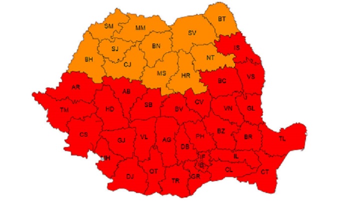 ANM a emis avertizări meteo de cod roşu şi cod portocaliu de caniculă şi disconfort termic accentuat în toată ţara, până în 17 iulie, inclusiv.