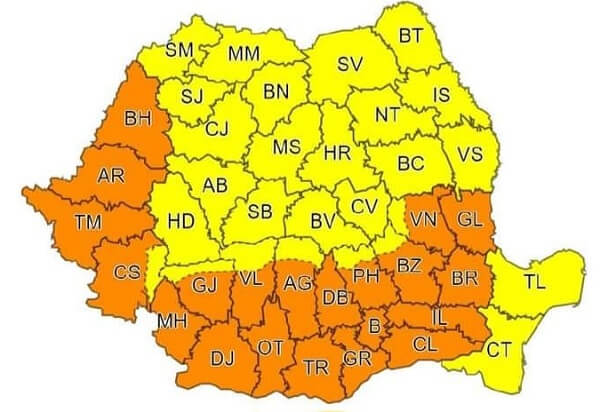 Pentru luni a fost emis, deja, un cod portocaliu. "În Crișana, Banat, Oltenia, Muntenia și în sudul Moldovei valul de căldură va persista, iar canicula se va intensifica. Se vor înregistra temperaturi maxime în general de 37...39 de grade, disconfortul termic va fi accentuat, iar indicele temperatură-umezeală (ITU) va depăși pragul critic de 80 de unități. Temperaturile minime se vor situa între 18 și 24 de grade", precizează cea de-a doua alertă a meteorologilor.