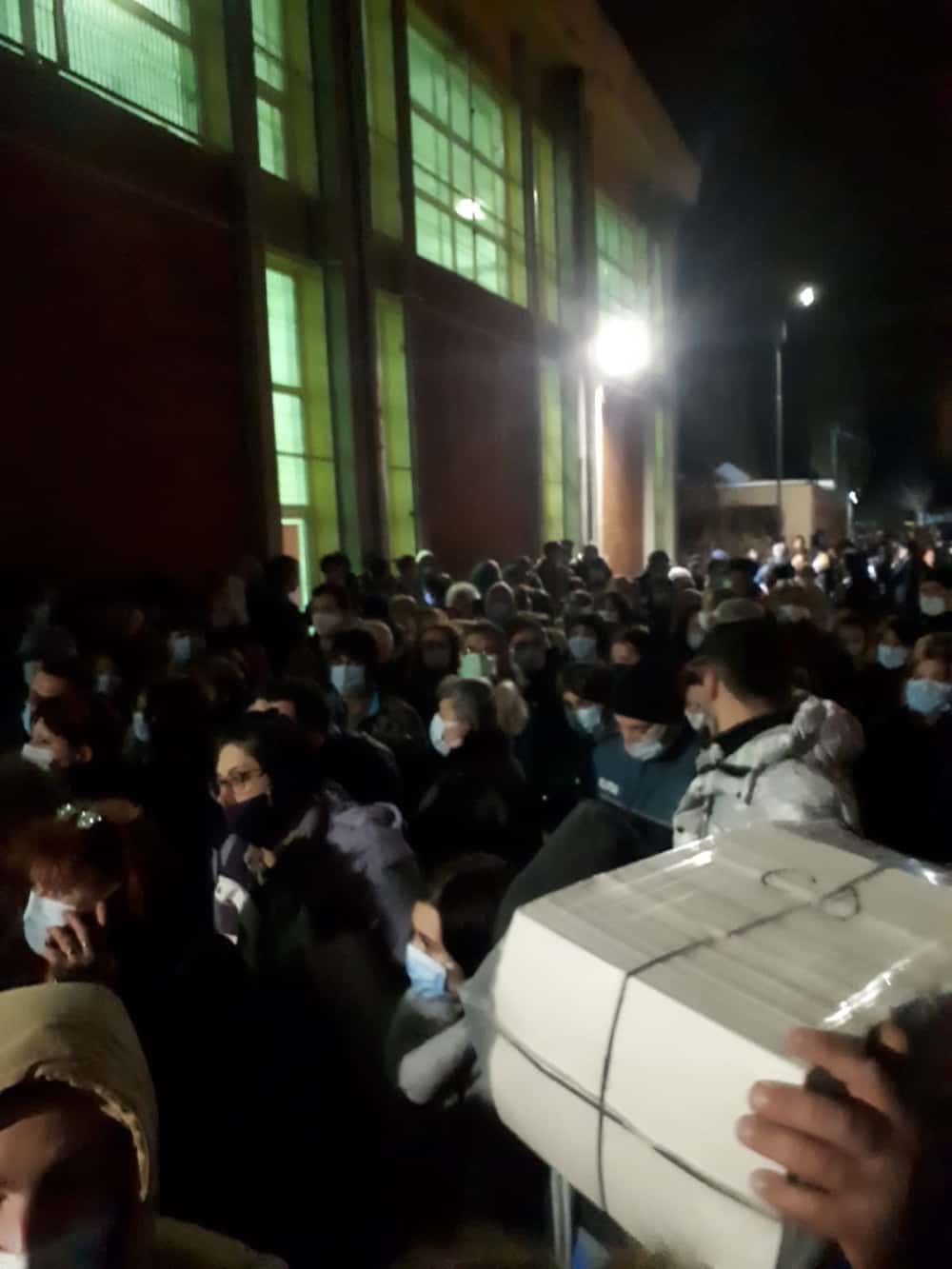 Ce distanţare? Aglomeraţie de proporţii, după alegerile parlamentare, la Universitatea Petrol-Gaze Ploieşti, acolo unde s-au derulat procedurile de predare a materialelor de la secţiile de vot. Sute de prahoveni veniţi cu sacii de buletine de vot şi cu tabletele au fost ţinuţi la o coadă uriaşă la intrarea în sala de sport a unităţii. Au stat unul lângă altul, sub nasul jandarmilor, cu orele, în frig.