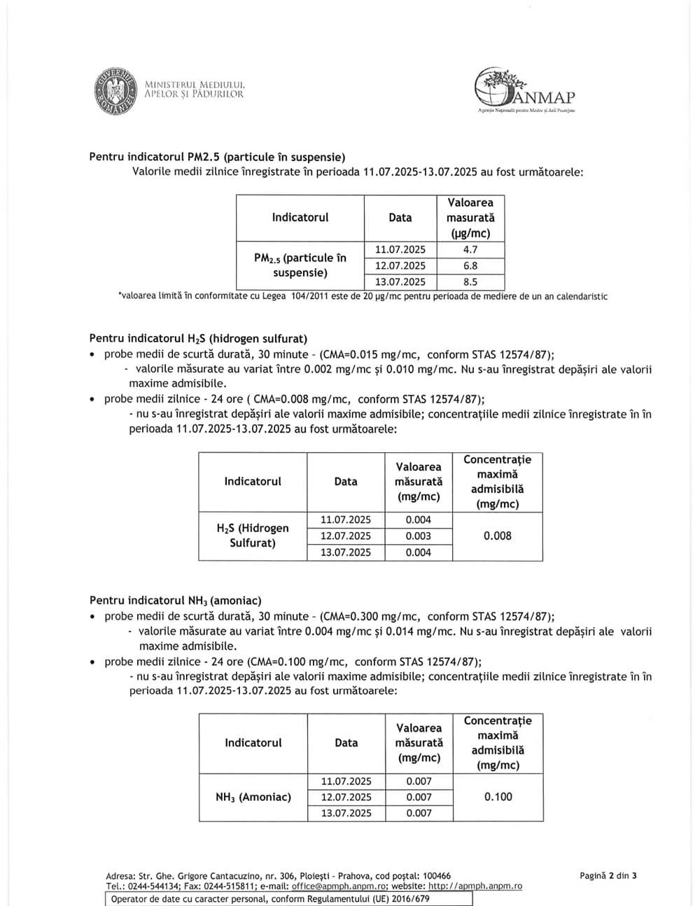 Într-o informare transmisă de Agenția pentru Protecția Mediului către autoritățile locale și județene, reprezentanții APM Prahova susțin că laboratorul mobil amplasat săptămâna trecută la Parcul Municipal Vest nu a înregistrat depășiri ale valorilor, îîn timpul măsurătorilor ce vizează principalii indicatori de poluare. Cifrele au fost publicate de primarul Ploieștiului, Mihai Polițeanu, care cere măsuri concrete împotriva măsurătorilor și actualizarea legislației. „E ironic: suntem «în limite legale», dar ploieștenii respiră zilnic riscuri care nu țin cont de hârtii. Asta nu e protecție, e birocrație!” a acuzat edilul.