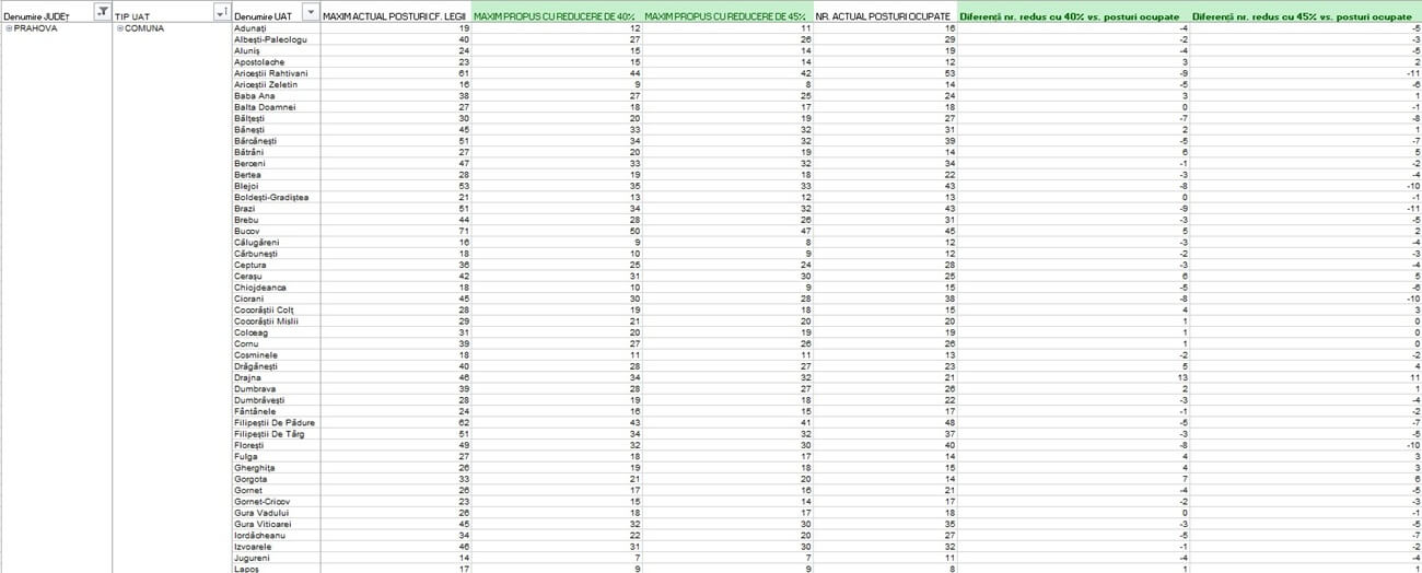 Guvernul a publicat, în acest context, o analiză privind administrația publică locală. Potrivit documentului, Ploieștiul s-ar afla printre cele mai afectate de tăieri. Din cele 904 posturi ocupate, ar urma să dispară 207, pe scenariul de reducere cu 40%, și 240 pe scenariul de 45%.